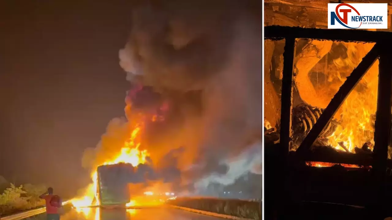 हाईवे पर टक्कर के बाद बस में लगी भीषण आग