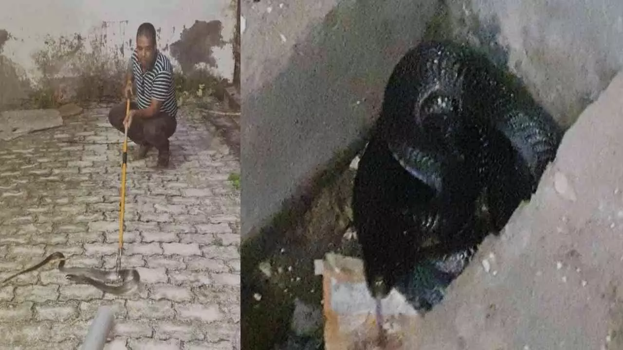 Etawah News: नाली में दिखा 5 फीट लंबा कोबरा, मची दहशत –किया गया रेस्क्यू