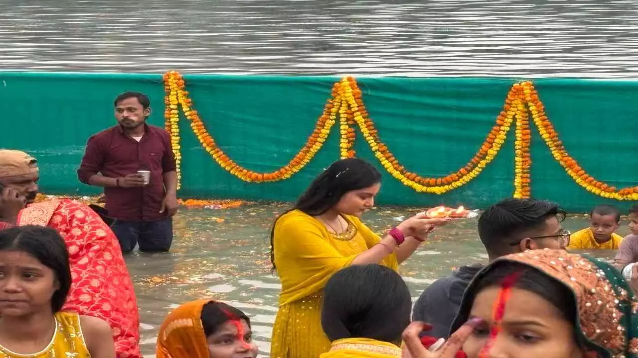 Lucknow News: लक्ष्मण मेला मैदान में छठ पूजा का भव्य आयोजन, श्रद्धालुओं ने उगते सूर्य को अर्घ्य अर्पित किया