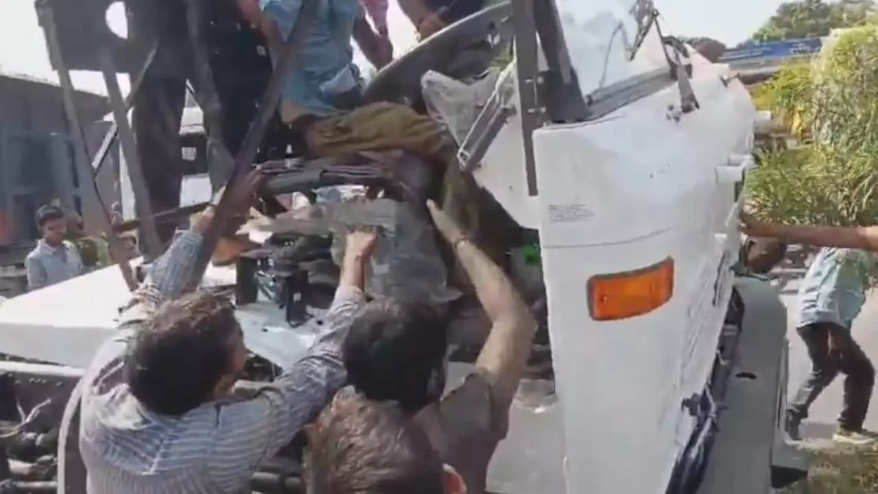 --- शक्तिनगर से वाराणसी जा रही नई चेचिस दुर्घटनाग्रस्त, चालक घायल :